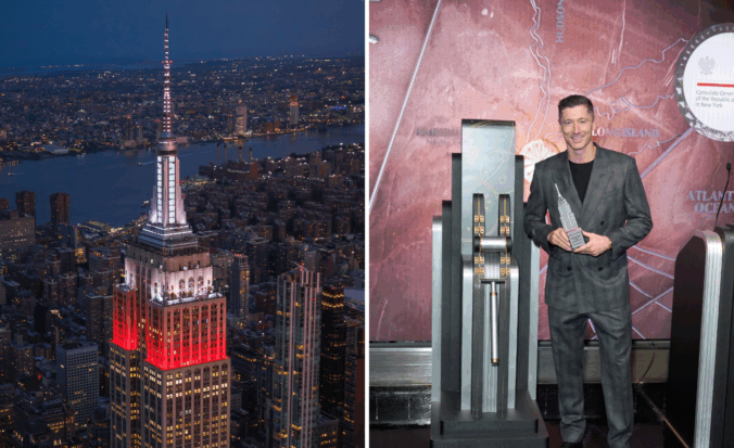 W poniedziałek wieczorem piłkarz Robert Lewandowski jako pierwszy w historii Polak symbolicznie rozświetlił polskimi barwami narodowymi legendarny nowojorski drapacz chmur Empire State Building. Wyraził dumę z faktu, że jest Polakiem. Gwiazdor FC Barcelony nazwał wydarzenie w przeddzień Święta Niepodległości wielkim przeżyciem. Jak dodał, jest szczęśliwy, że może uczestniczyć w tej uroczystości. – Jestem...